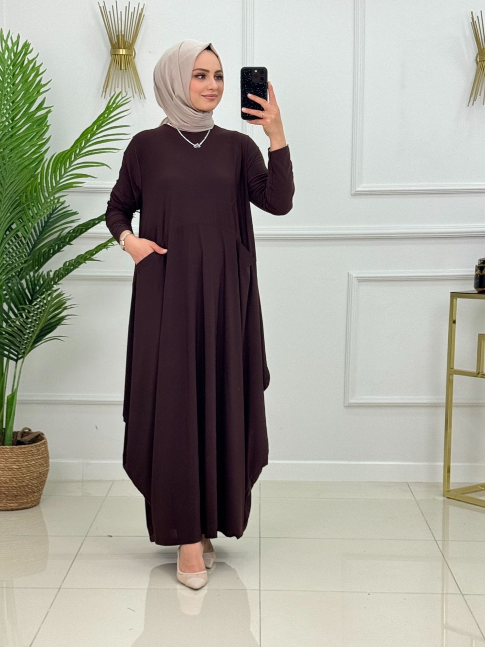 Geniş beden uyumu ile sandy kumaş Bodrum elbisemiz