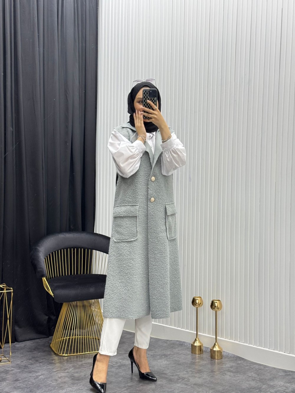 Buklet Yelek Gri Gri