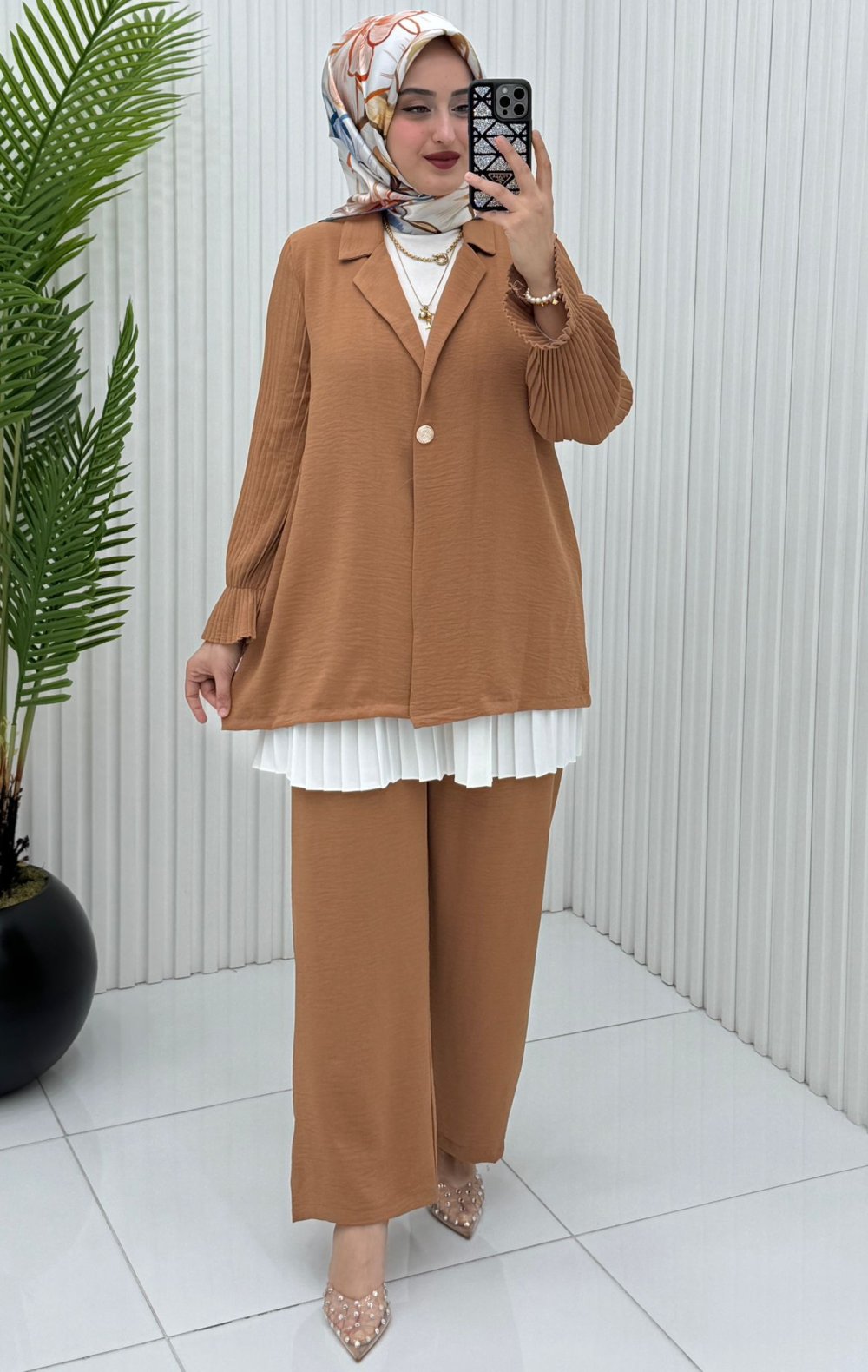 Rahatlık ve şıklığı bir araya getiren Burcu Takım sade ama zarif duruşuyla günlük kombinlerinizi güçlendiriyor. Yumuşak kumaşı ve esnek yapısı sayesinde gün boyu konfor sunarken, modern kesimiyle stil sahibi bir görünüm yaratır. Her ortamda şıklığı yakalamanızı sağlar.