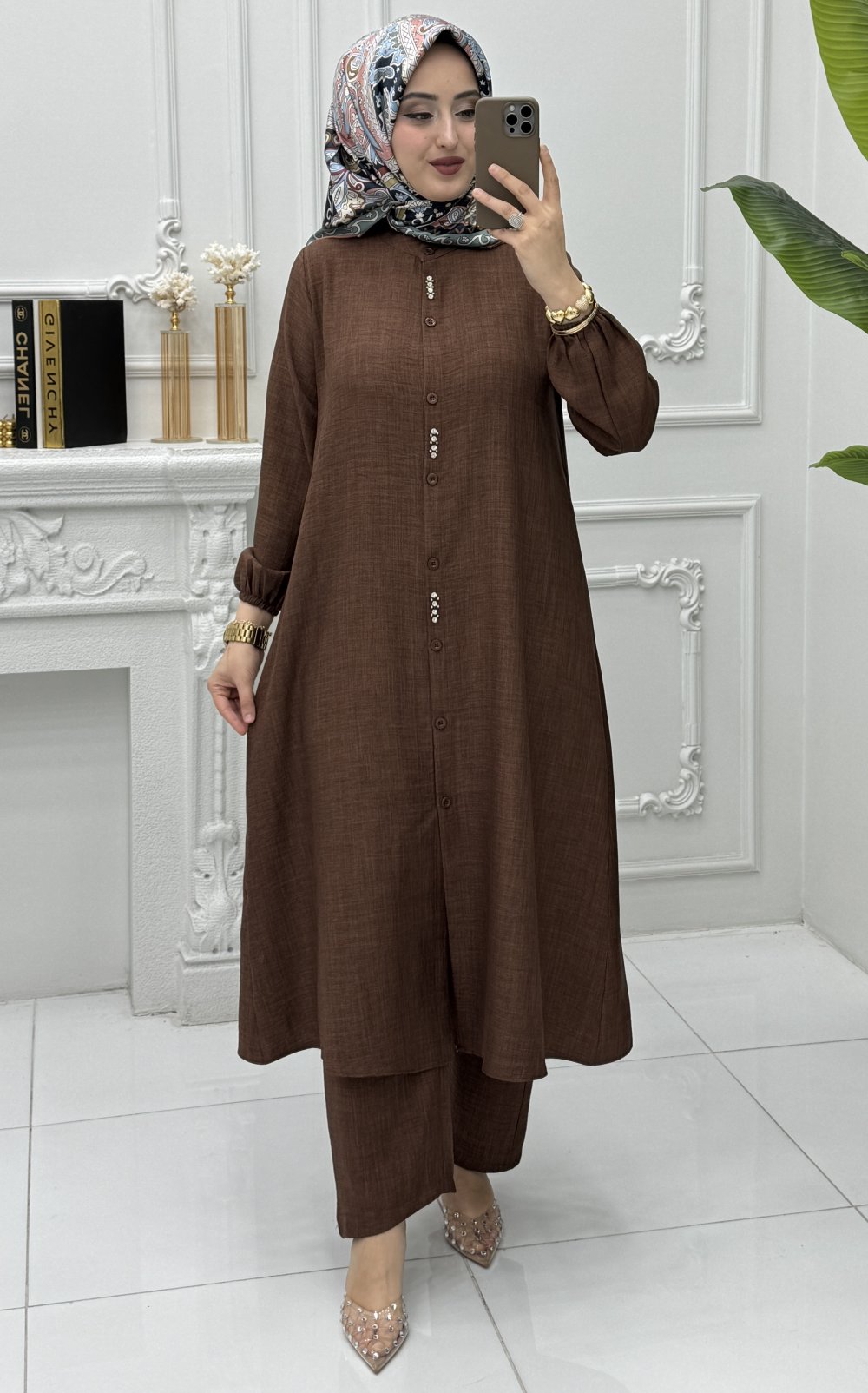 Buse Tunik Takım Kahverengi