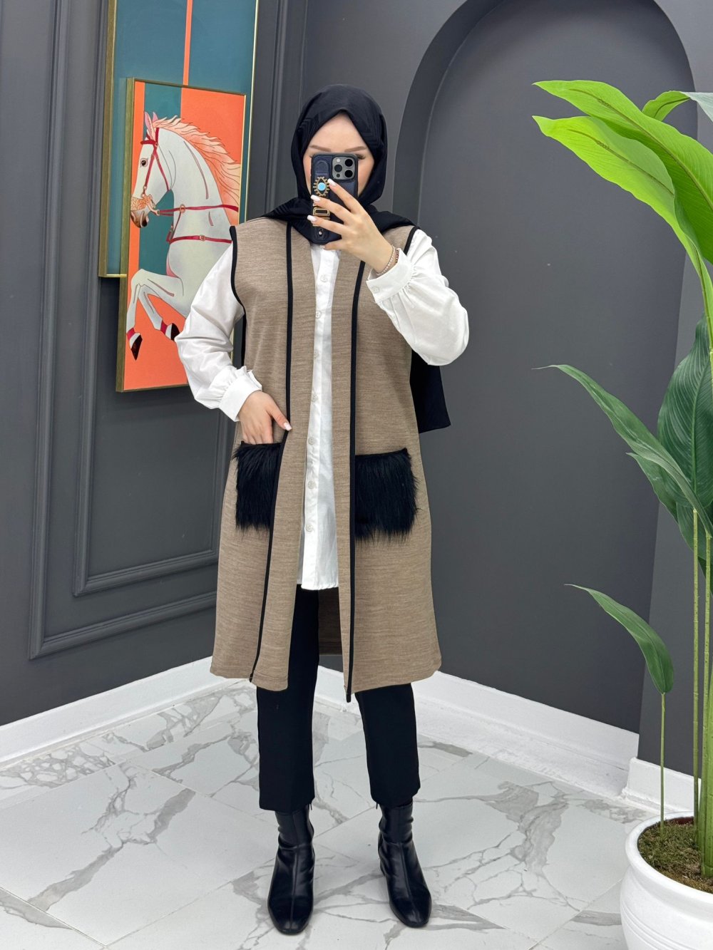 Cebi Kürklü Yelek - Vizon