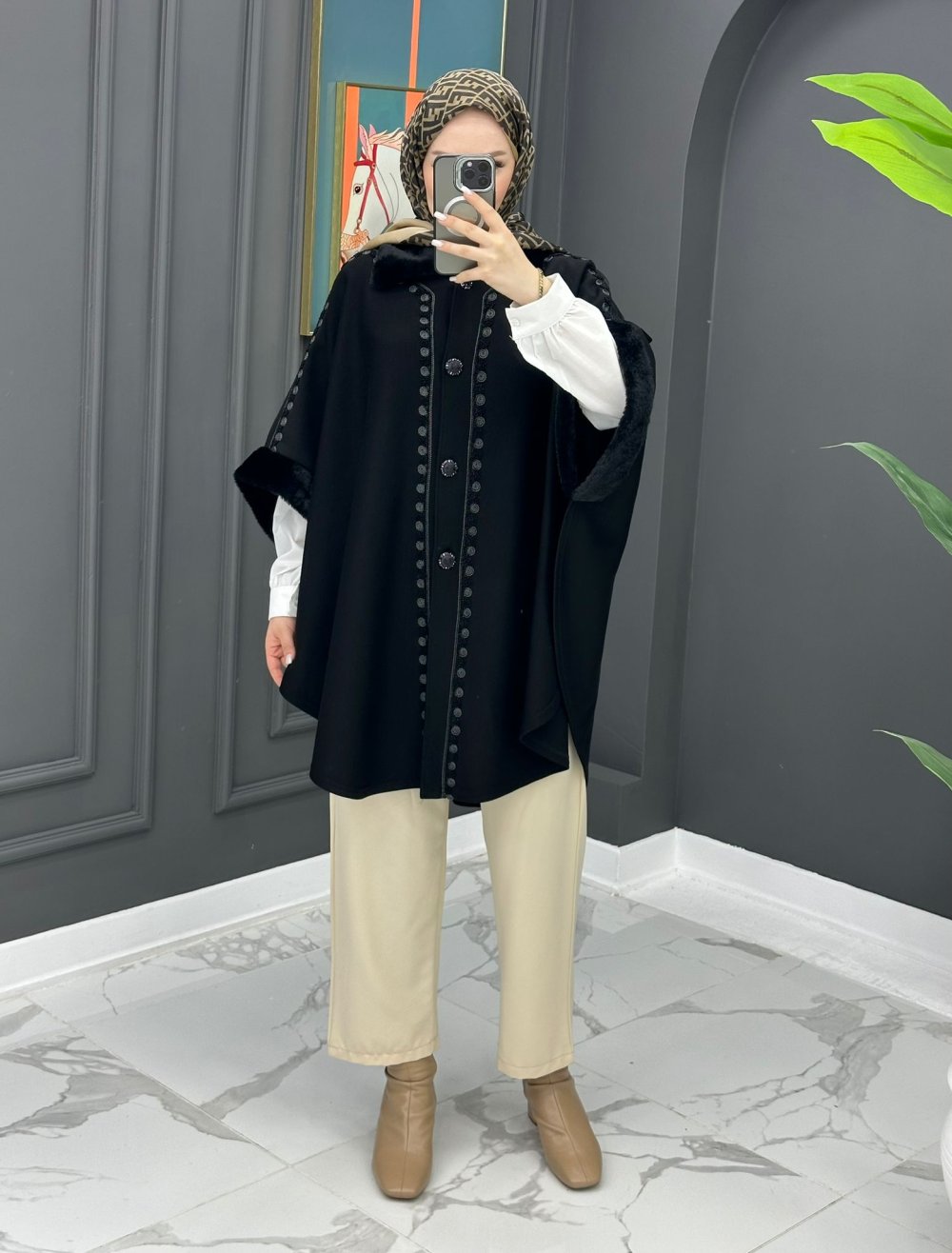 Çelik Örme Panço - Siyah