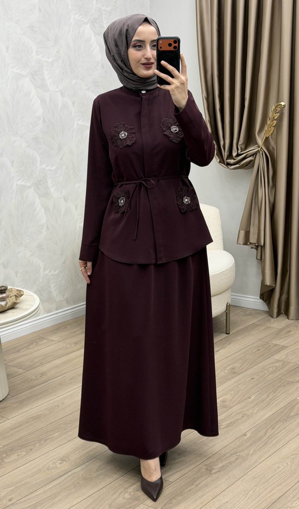 Çiçek Etek Takım Bordo