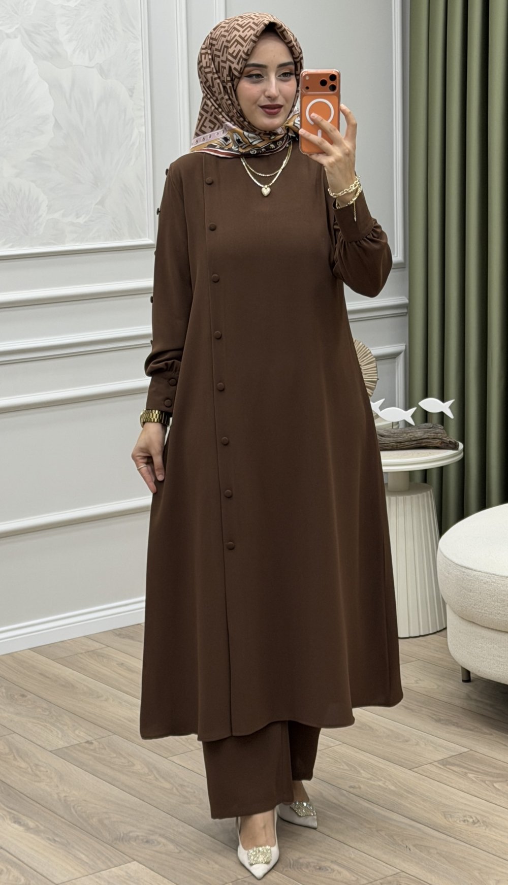 Rahatlık ve şıklığı bir araya getiren Çiğdem Takım,sade ama zarif duruşuyla günlük kombinlerinizi güçlendiriyor. Yumuşak kumaşı ve esnek yapısı sayesinde gün boyu konfor sunarken, modern kesimiyle stil sahibi bir görünüm yaratır.