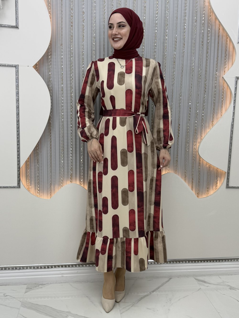 Damla elbise Bordo