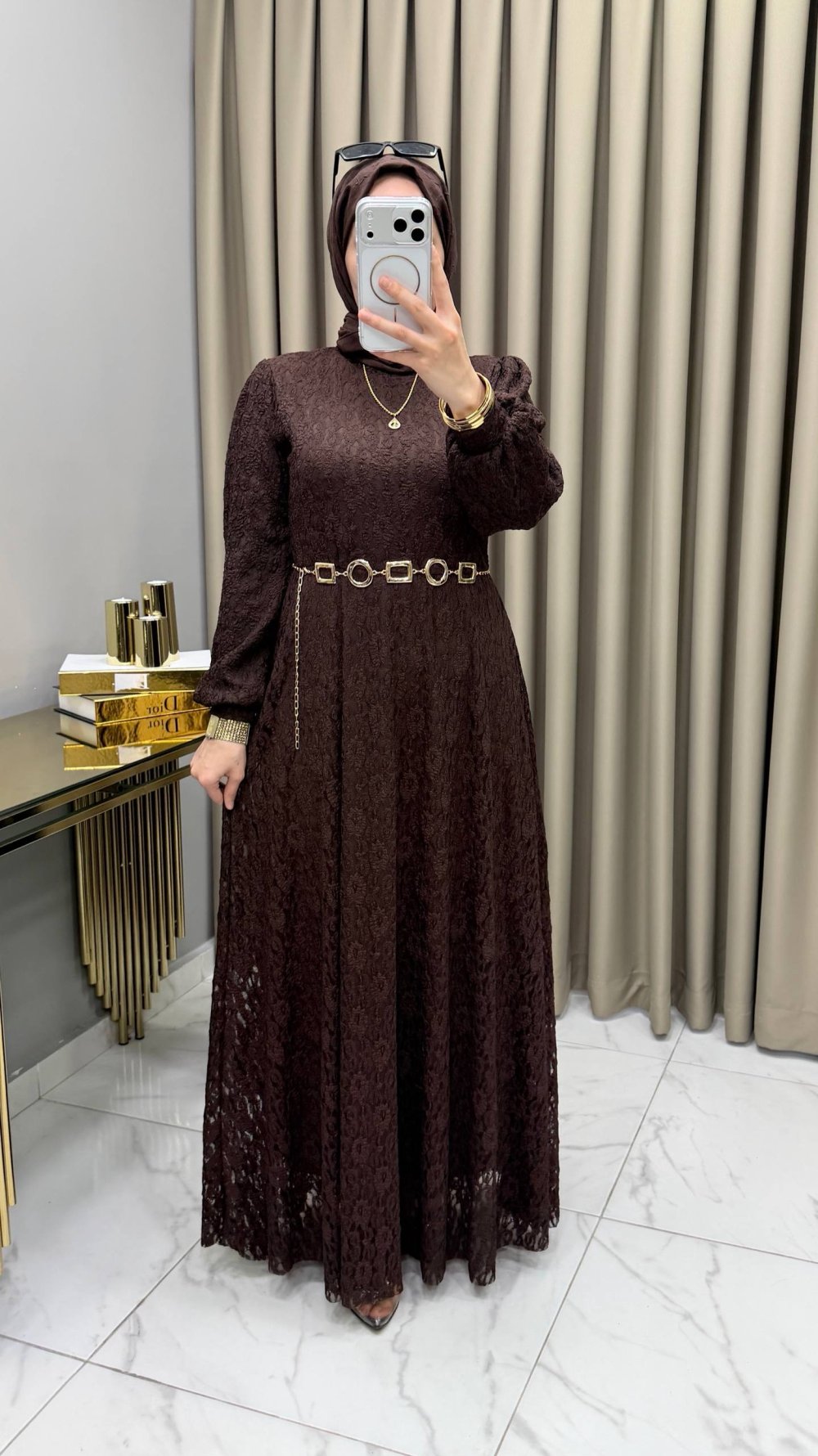 Dantel Elbise Kahve Renk