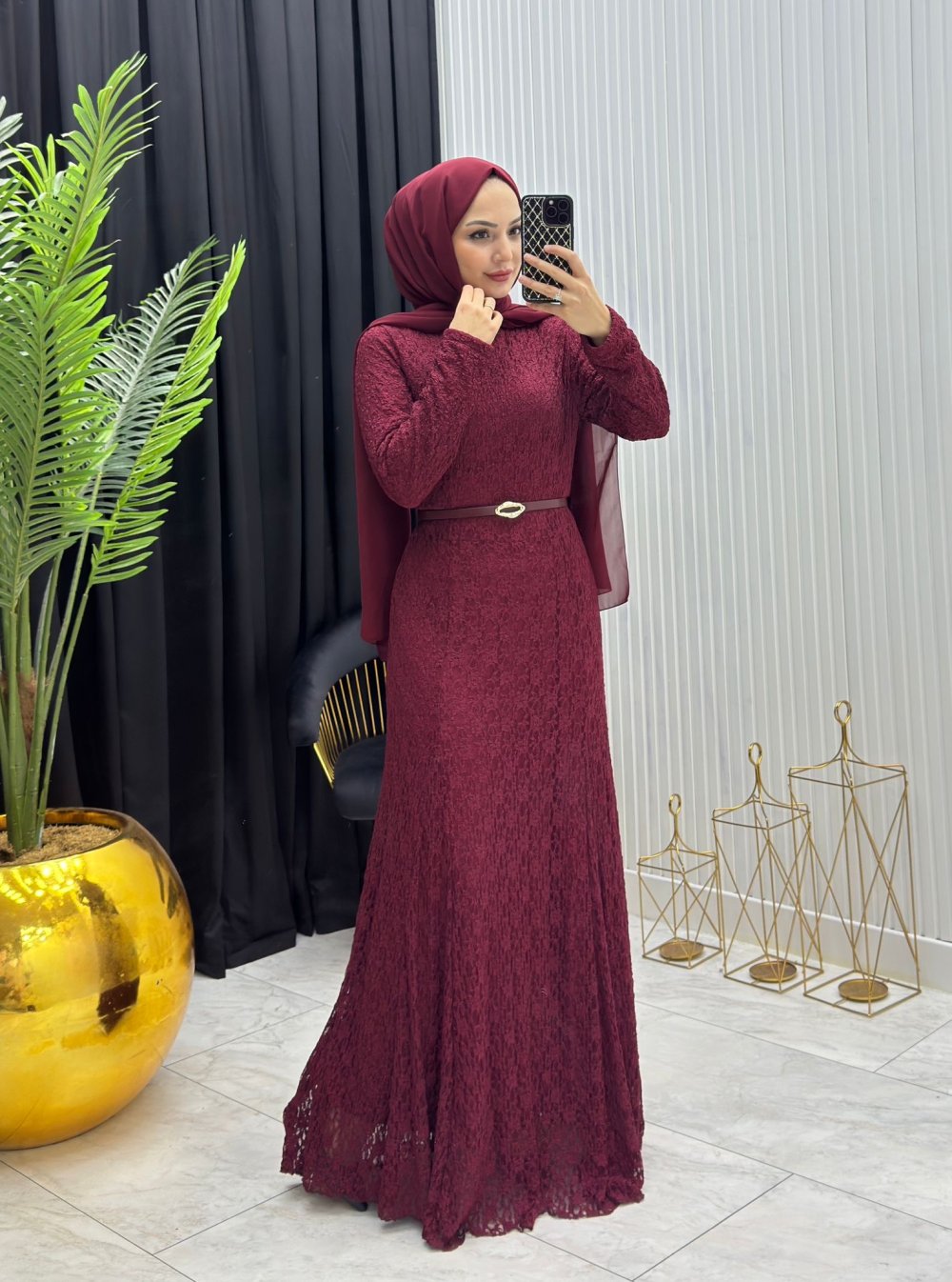 Dantelli Elbise Bordo Bordo