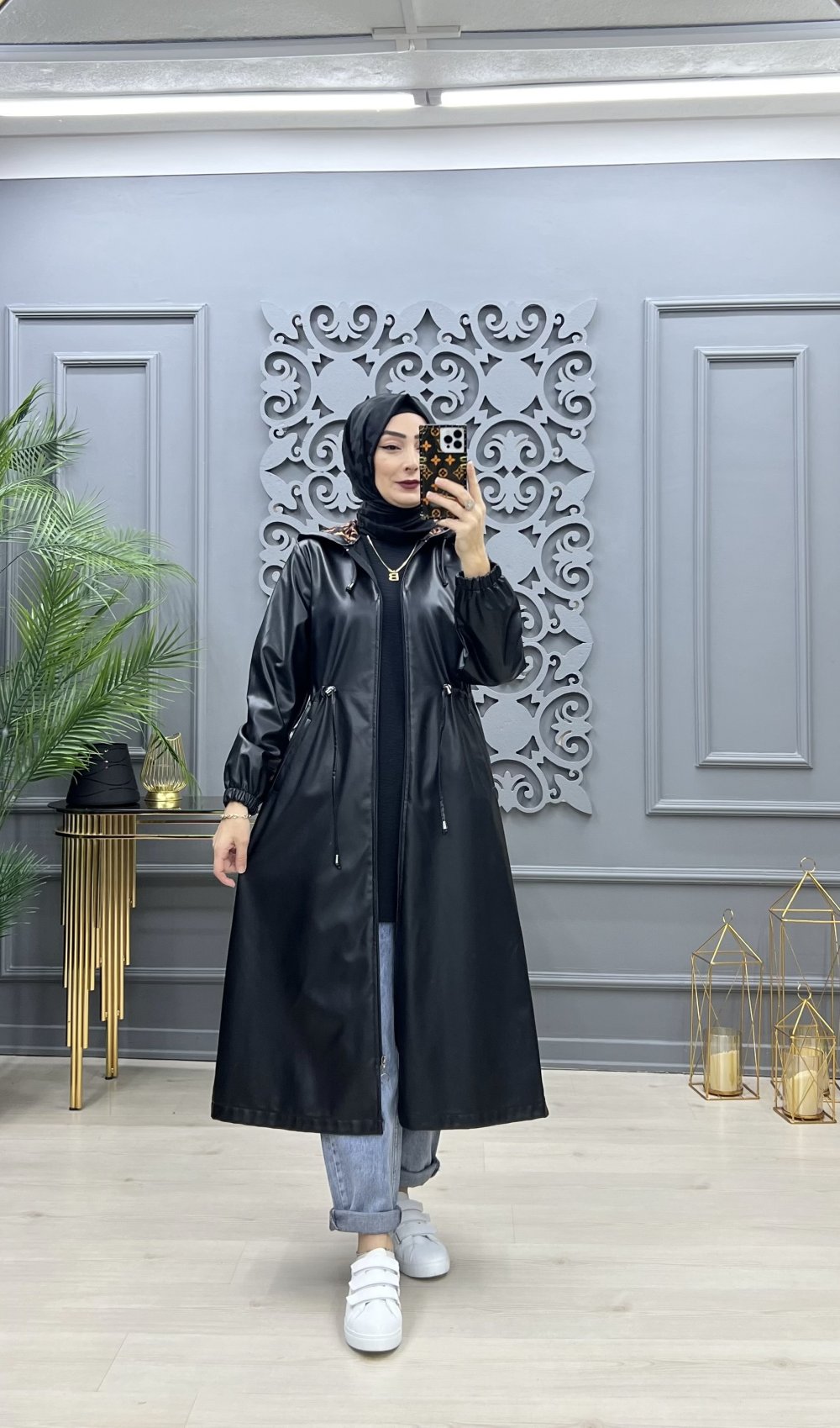 Deri trençkot kap Siyah