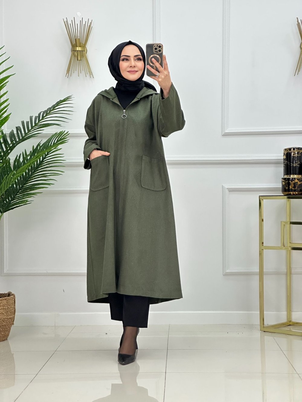 Deva  kapşonlu kaşe kaban