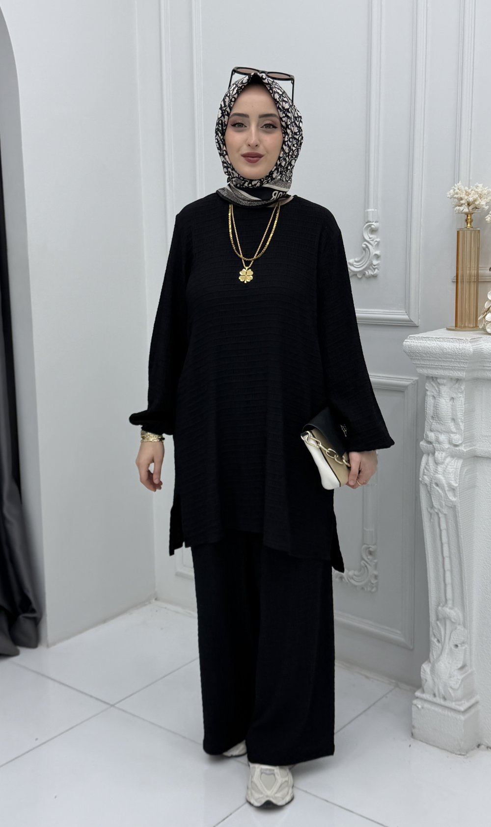 Rahatlık ve şıklığı bir araya getiren Ekin Takım, sade ama zarif duruşuyla günlük kombinlerinizi güçlendiriyor. Yumuşak kumaşı sayesinde gün boyu konfor sunarken, modern kesimiyle stil sahibi bir görünüm yaratır.