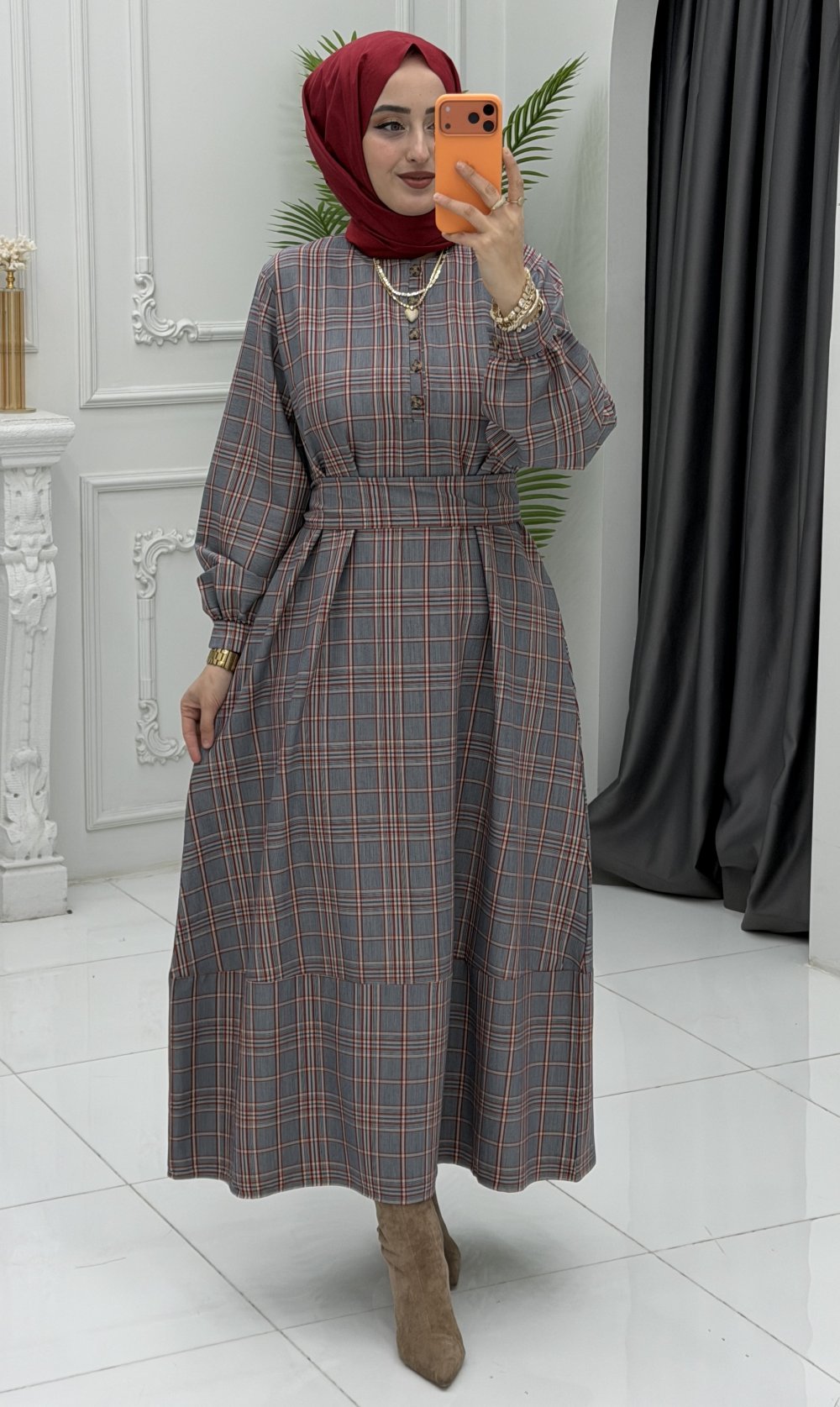 Ekose Elbise, hem iş hem de günlük hayatınızda rahatlıkla tercih edebileceğiniz çok yönlü bir parçadır. Şıklığı konforla buluşturan bu tasarım, sezonun en gözde modellerinden biri olacak!
