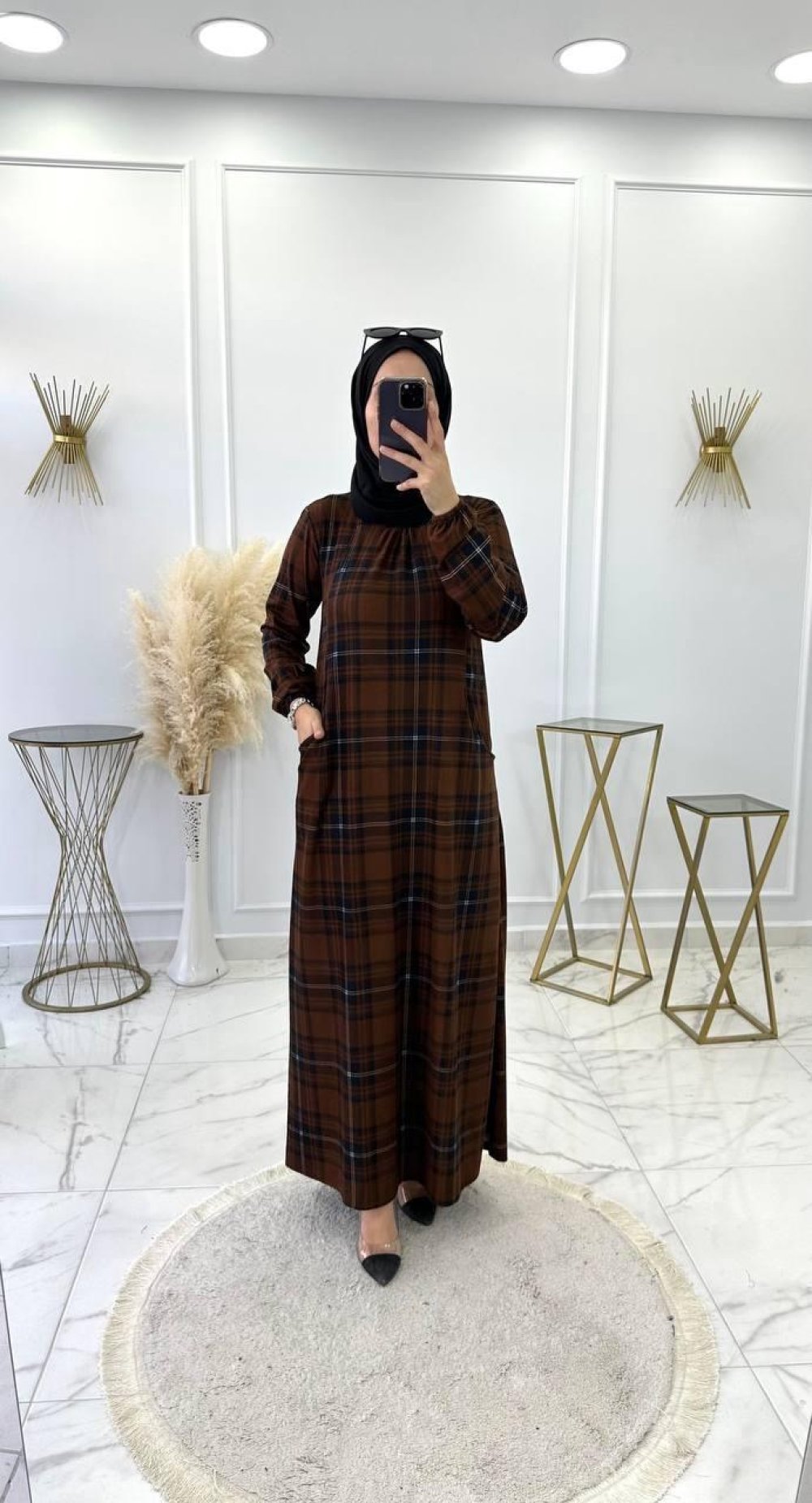 Ekose Elbise Kahve