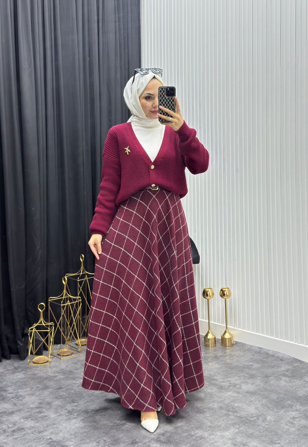 Ürünün Kumaşı;hırka 1. Sınıf triko kumaştan imal edilmiştir etek örme kumaştan imal edilmiştir