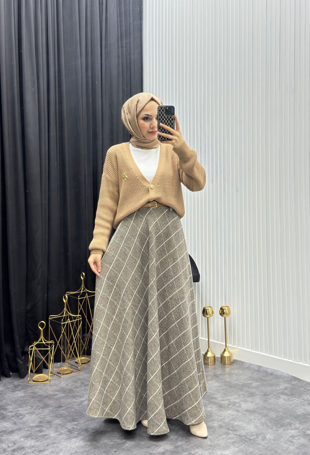 Ürünün Kumaşı;hırka 1. Sınıf triko kumaştan imal edilmiştir etek örme kumaştan imal edilmiştir