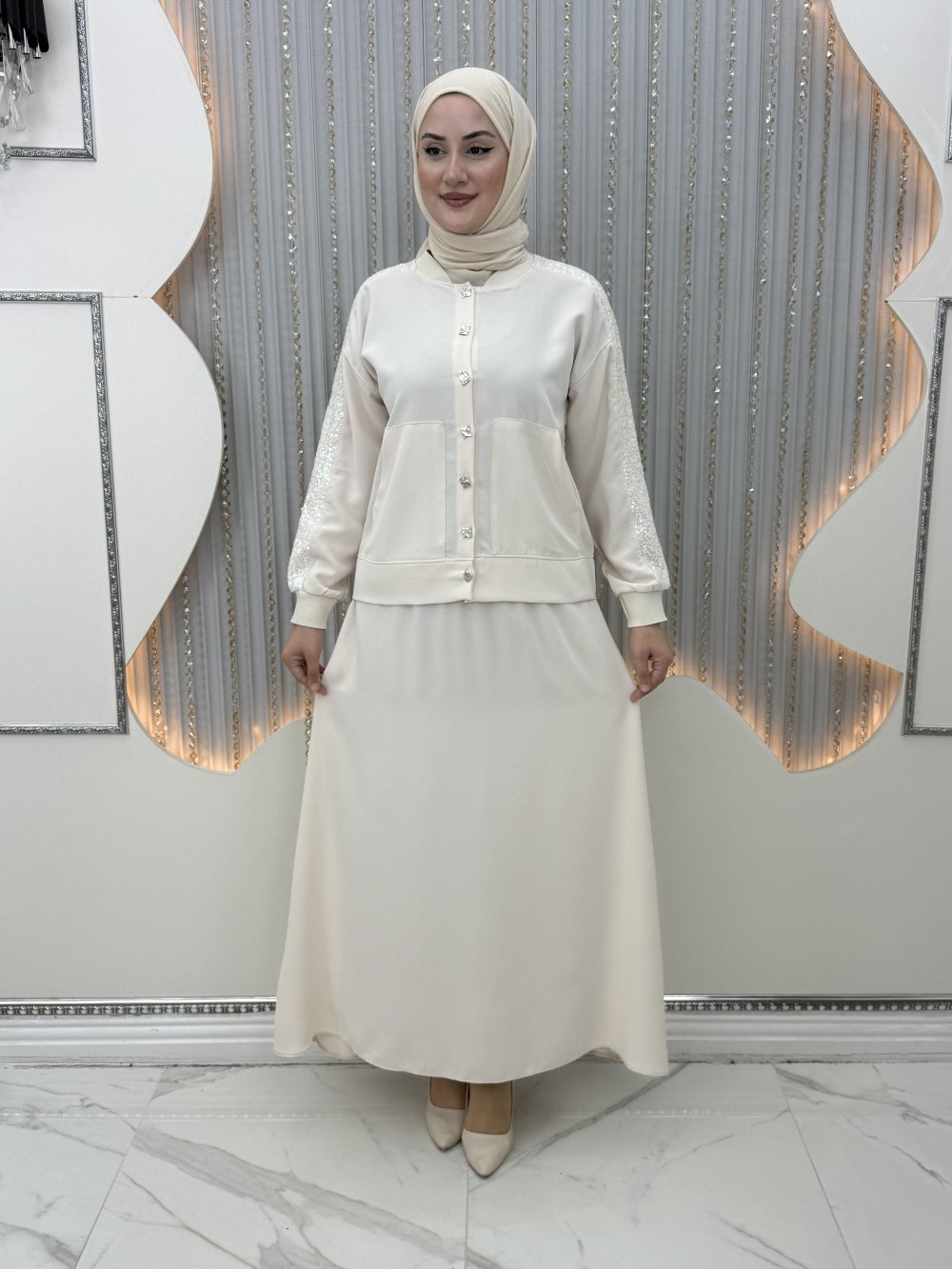 Elara Etekli Takım Krem