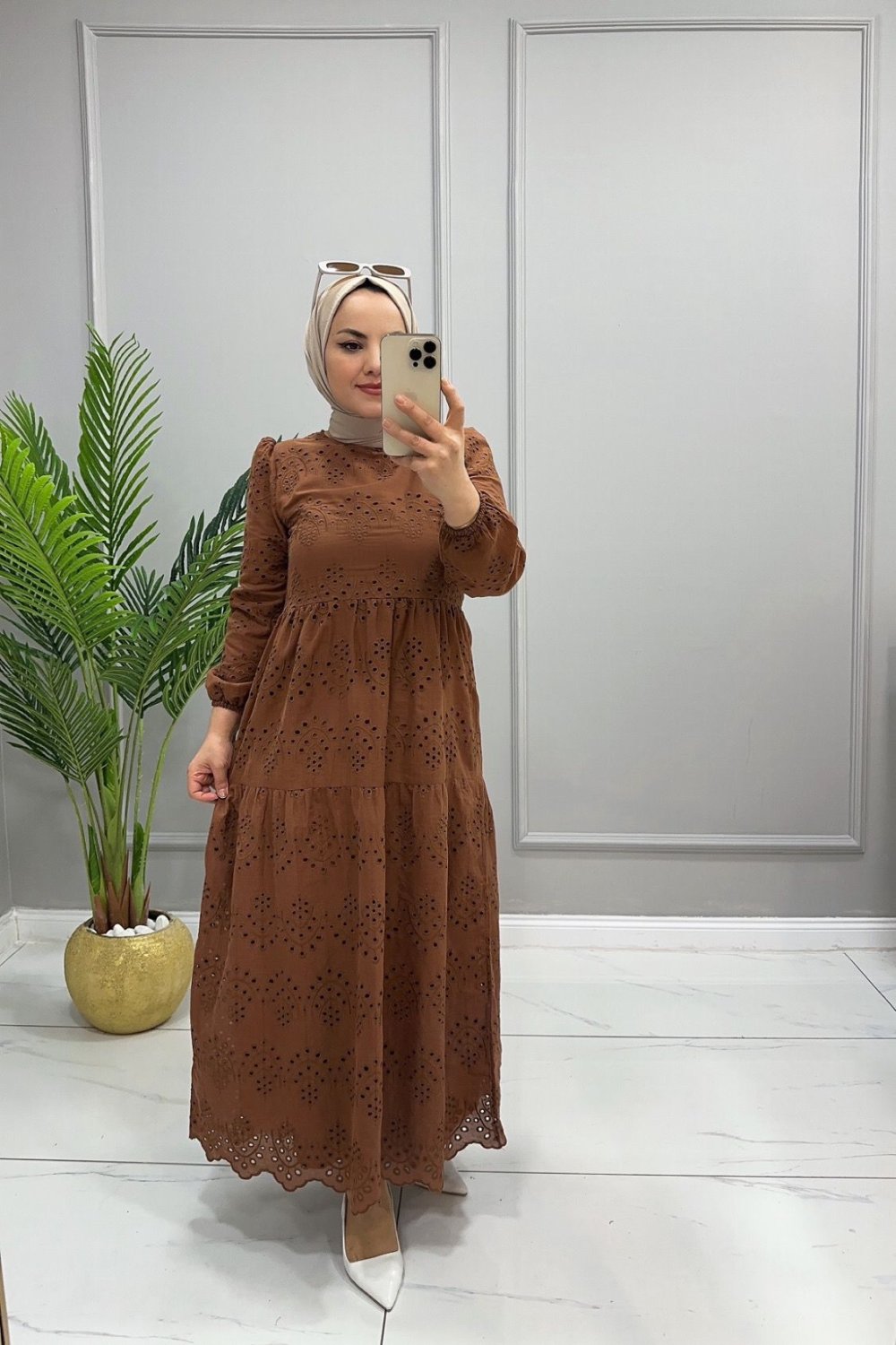 Elbise Dantel Şelale Kahverengi
