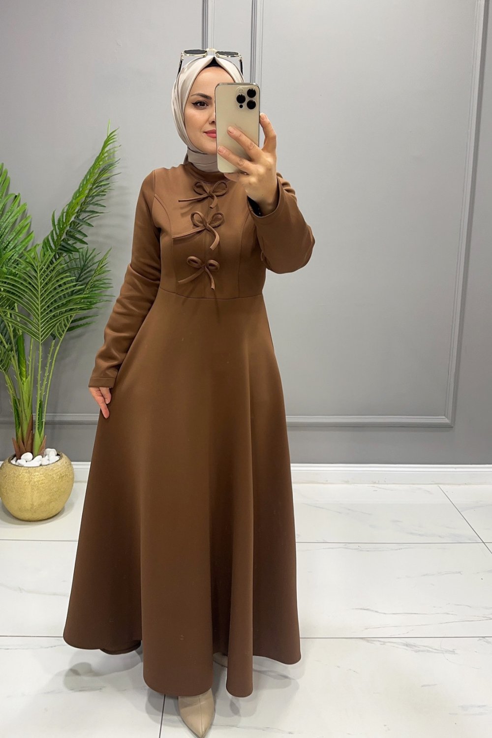 Elbise Scuba Niran Kahverengi