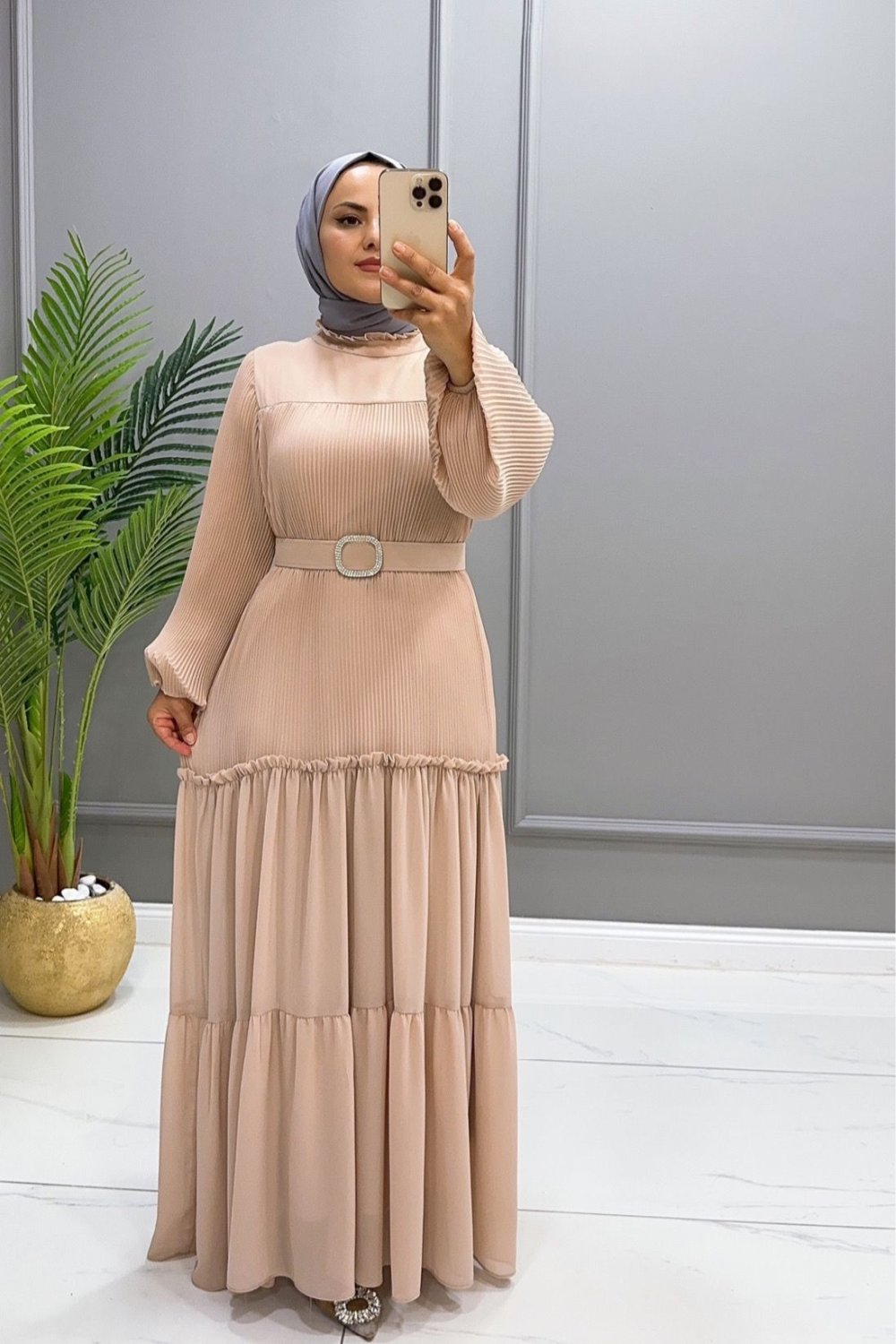 Elbise şifon Mercan Krem