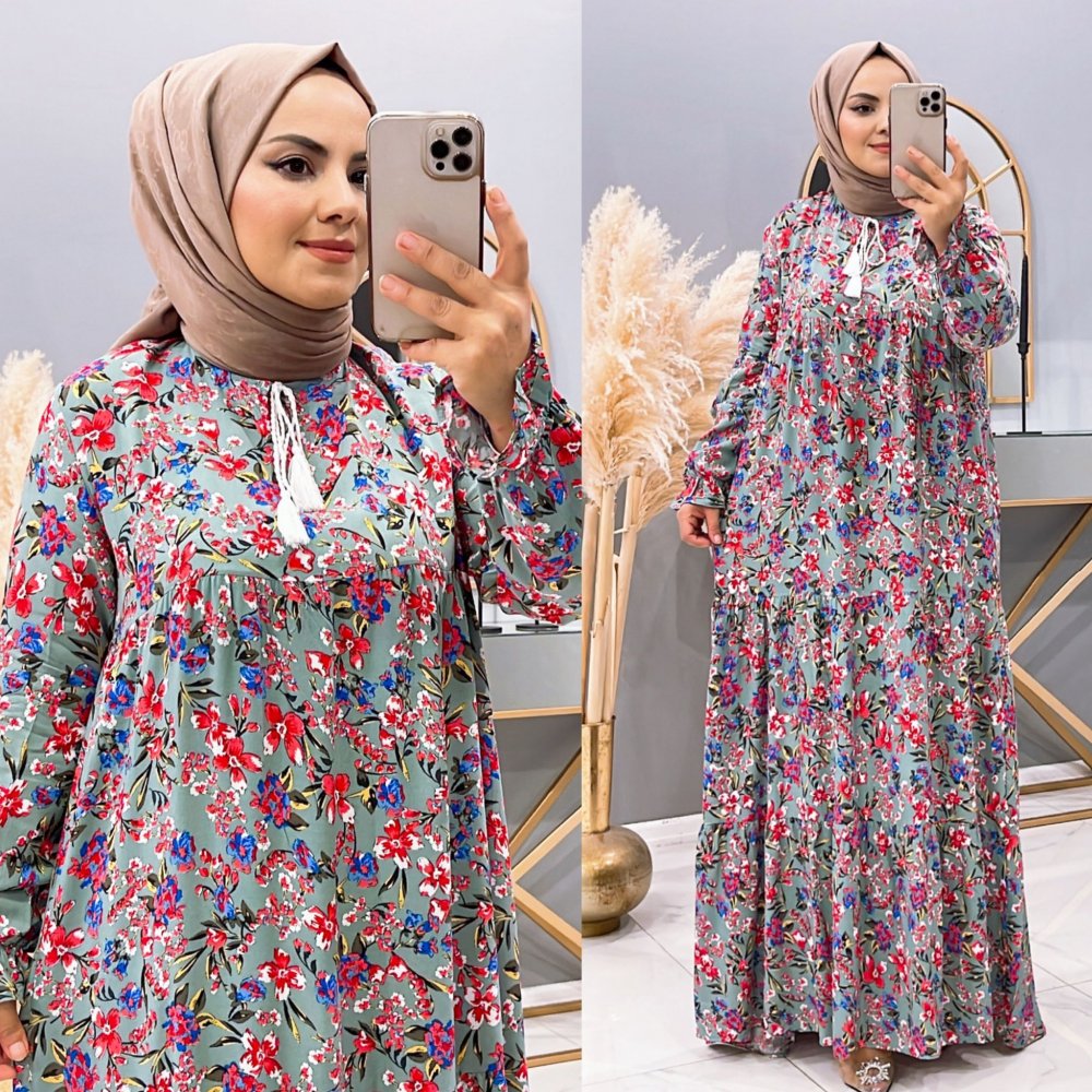 Elbise Viskon Bahar Mint Mavi