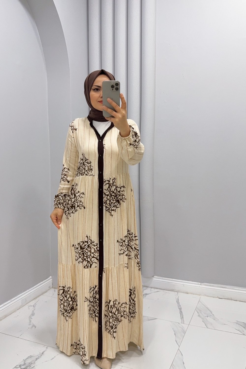 Elbise Viskon Mercan Kahverengi