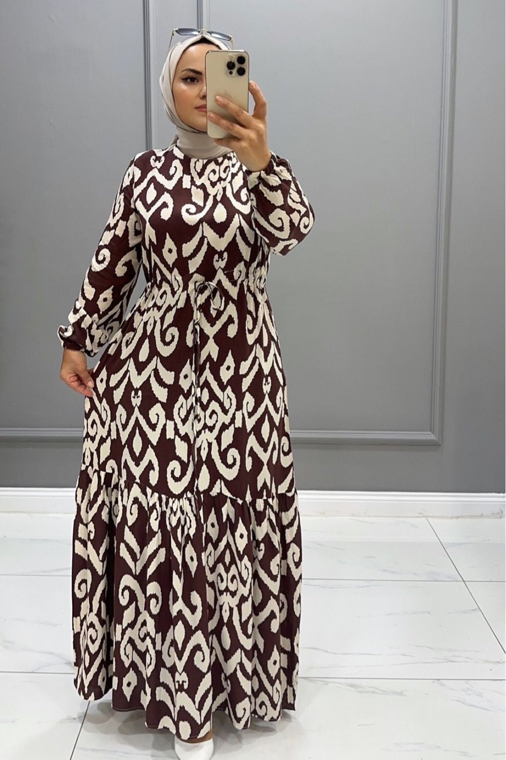 Elbise Viskon Seçil Kahverengi