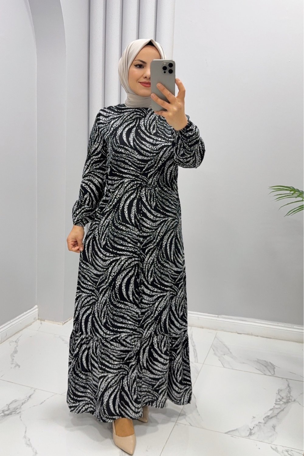 Elbise Viskon Zebra Naz Siyah Beyaz