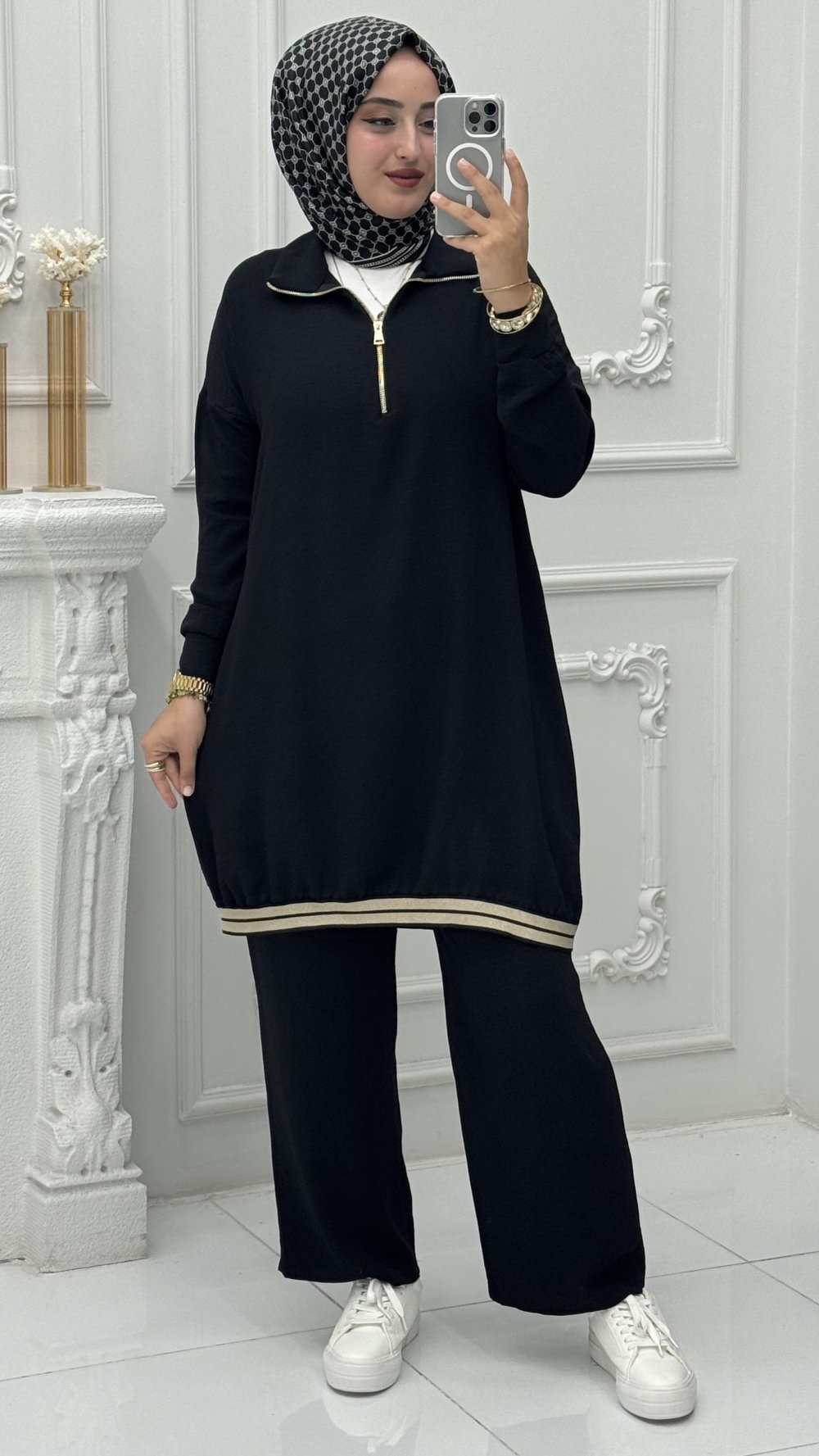 Rahatlık ve şıklığı bir araya getiren Eliz Takım, sade ama zarif duruşuyla günlük kombinlerinizi güçlendiriyor. Yumuşak kumaşı ve esnek yapısı sayesinde gün boyu konfor sunarken, modern kesimiyle stil sahibi bir görünüm yaratır.
