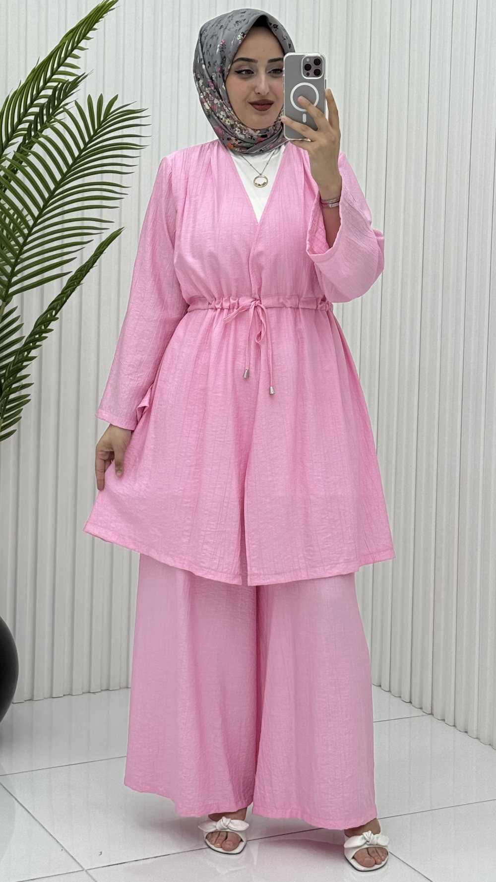 Rahatlık ve şıklığı bir araya getiren Esen 3 lü Takım, sade ama zarif duruşuyla günlük kombinlerinizi güçlendiriyor. Yumuşak kumaşı ve esnek yapısı sayesinde gün boyu konfor sunarken, modern kesimiyle stil sahibi bir görünüm yaratır.