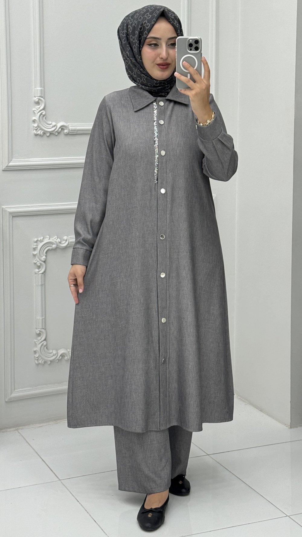 Esra Takım , hem iş hem de günlük hayatınızda rahatlıkla tercih edebileceğiniz çok yönlü bir parçadır. Şıklığı konforla buluşturan bu tasarım, sezonun en gözde modellerinden biri olacak!