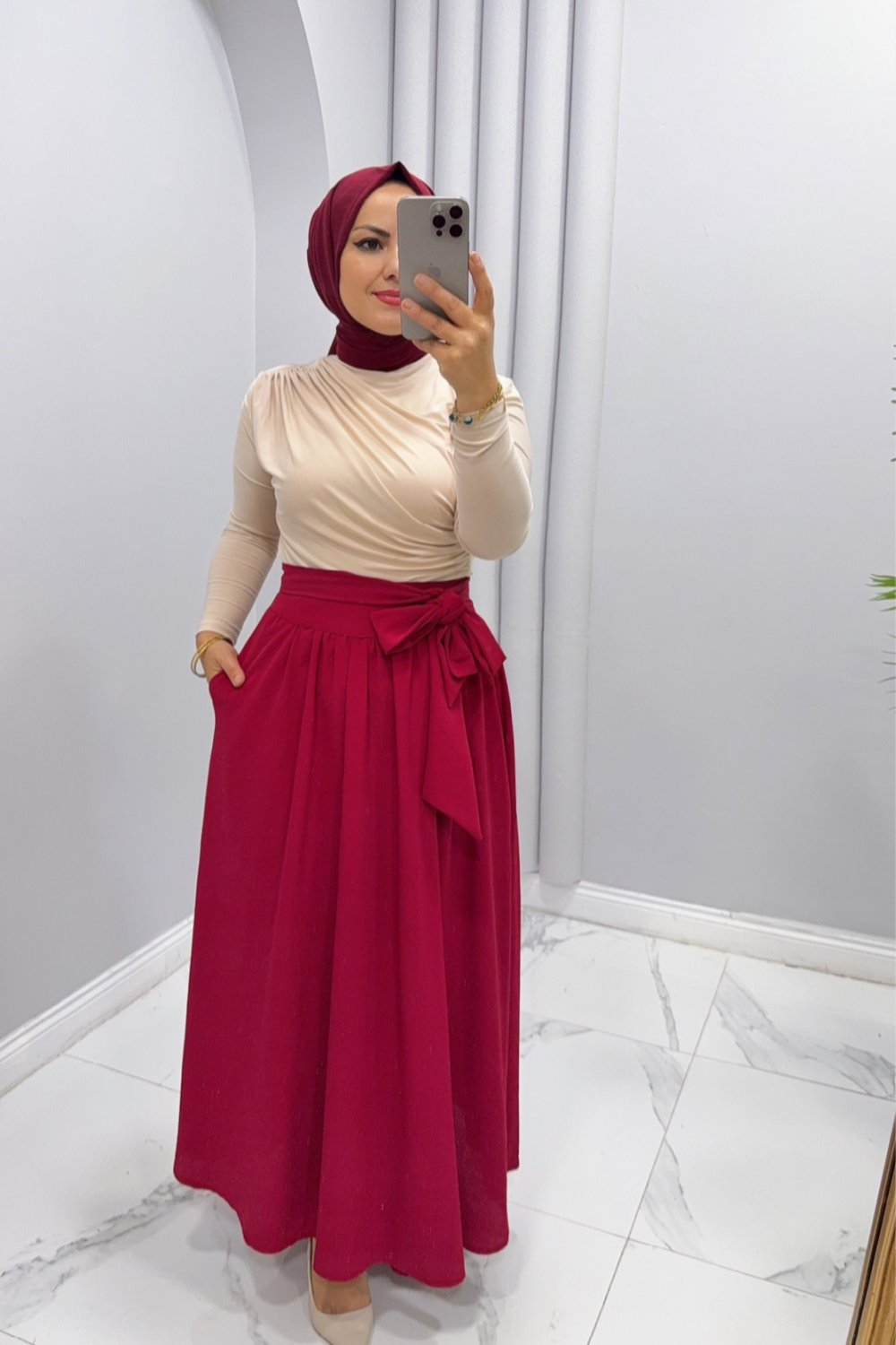 Etek pileli Zelal Bordo