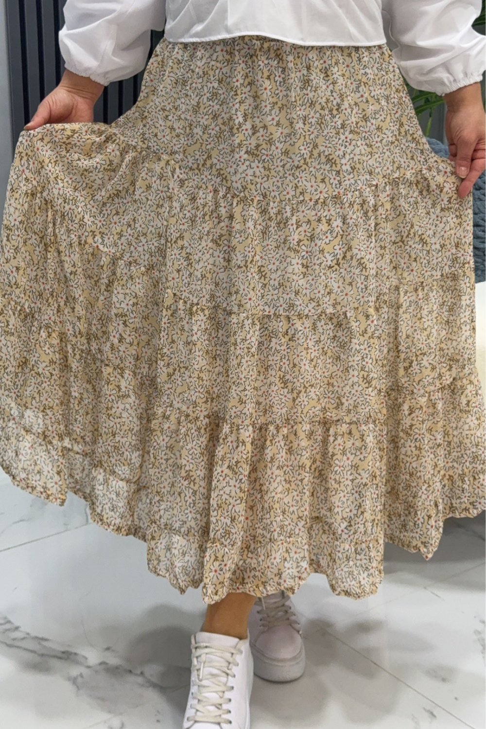 Etek şifon Bahar Krem
