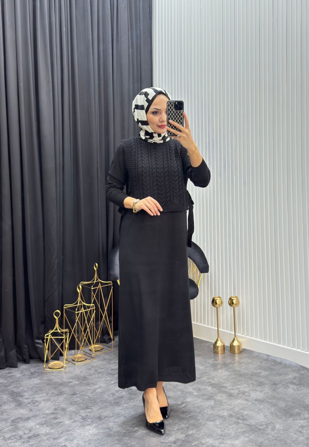 elbise ve süveter olmak üzere iki parçadan oluşmaktadır süveter yanlardan bağcık detaylıdır