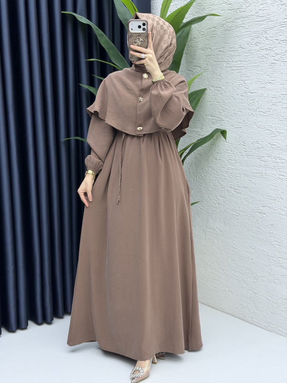 2 farklı model olarak kullanabileceğiniz pelerin detaylı elbisemiz