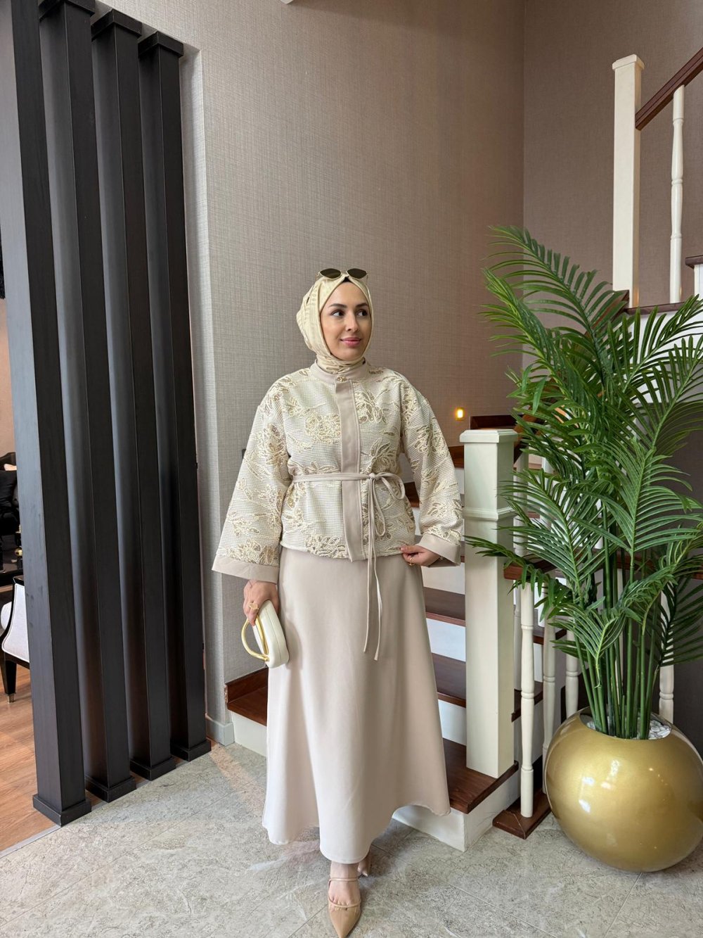 Ceket boy 60 cm’dir. File payet detaylıdır. Önden gizli düğmelidir, boynunda gold düğme detayı mevcuttur. Seyyar kuşağı bulunmaktadır.
