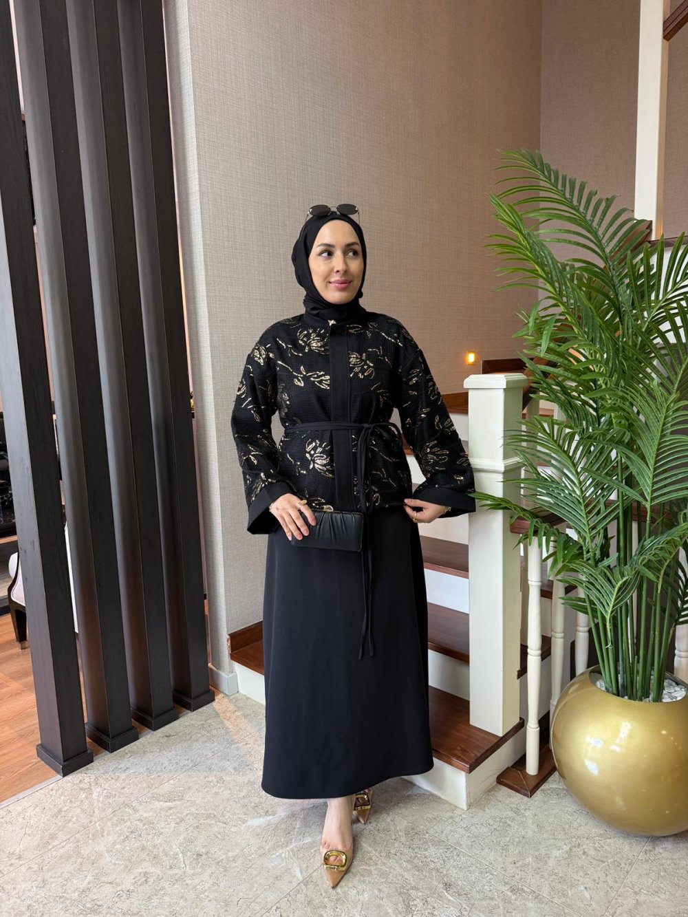 Ceket boy 60 cm’dir. File payet detaylıdır. Önden gizli düğmelidir, boynunda gold düğme detayı mevcuttur. Seyyar kuşağı bulunmaktadır.