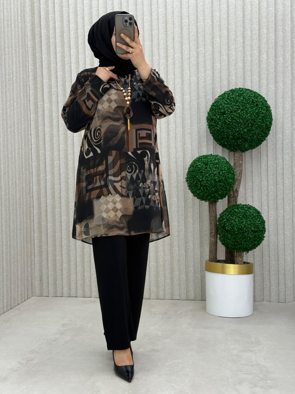 Tunik dijital baskılı şifon içi sandy kumaş
