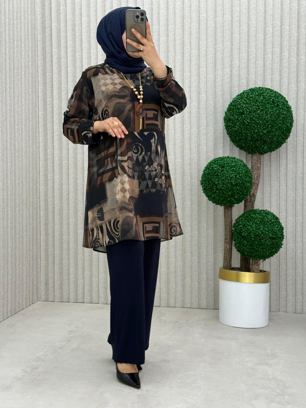 Tunik dijital baskılı şifon içi sandy kumaş