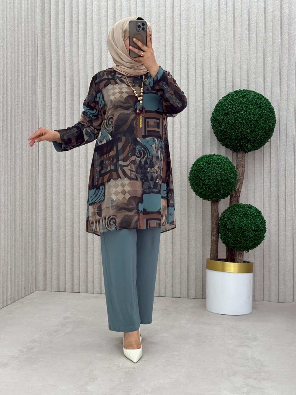 Tunik dijital baskılı şifon içi sandy kumaş