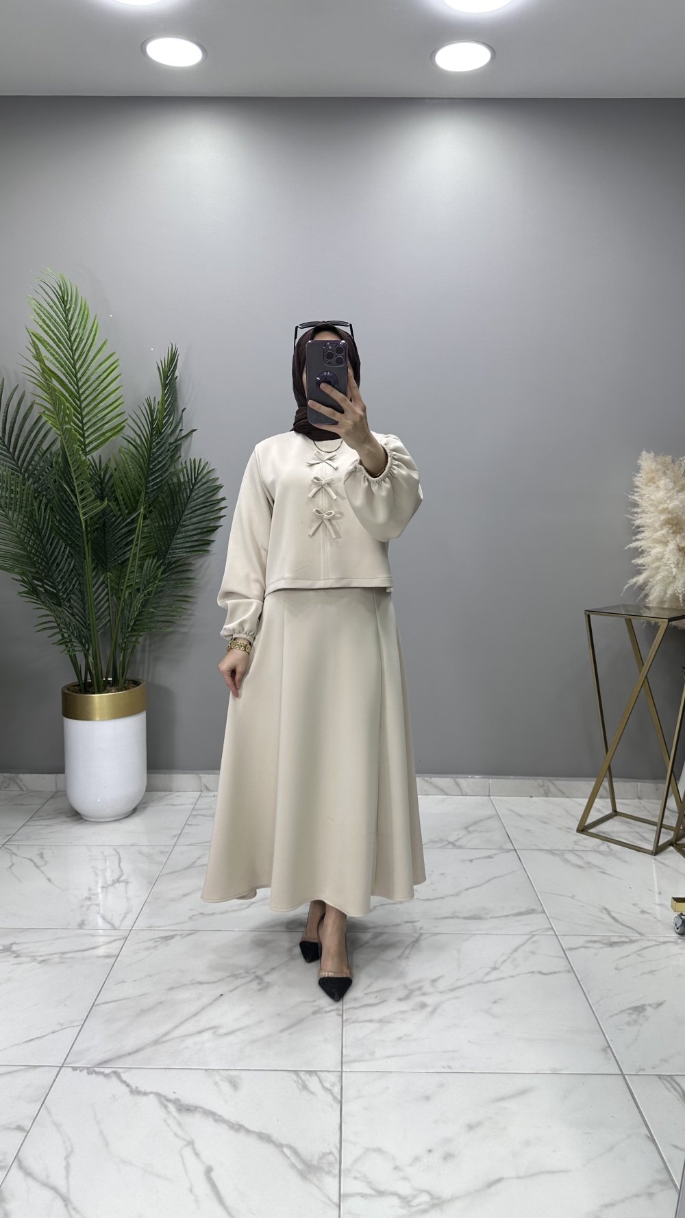 FİYONKLU TAKIMIMIZ KOD 4307, 40/42/44/46/48 bedenler Dabl Krep Kumaş Arkası fermuarlı etek boy 90 cm Üst boy 50 cm