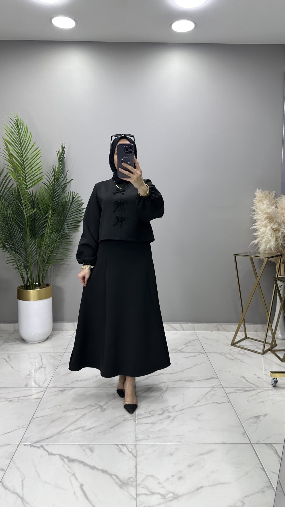 FİYONKLU TAKIMIMIZ KOD 4307, 40/42/44/46/48 bedenler Dabl Krep Kumaş Arkası fermuarlı etek boy 90 cm Üst boy 50 cm