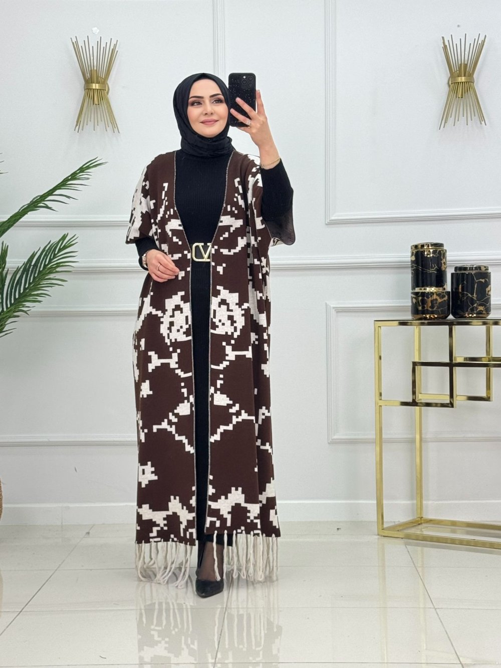 ?Ürün uzun kollu triko elbise ve kimono yelek olarak iki parçadan oluşmaktadır