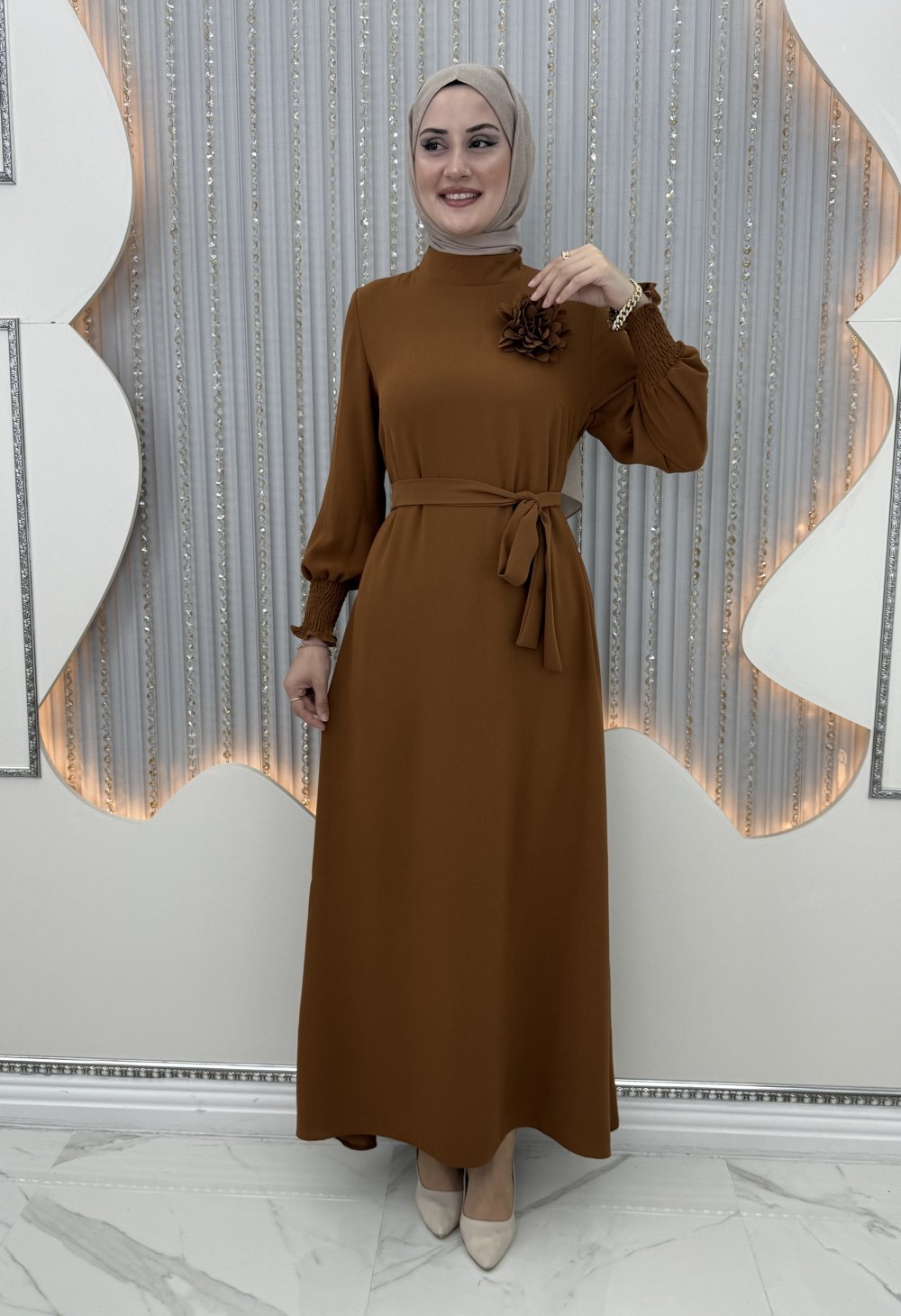 Güldane elbise Taba