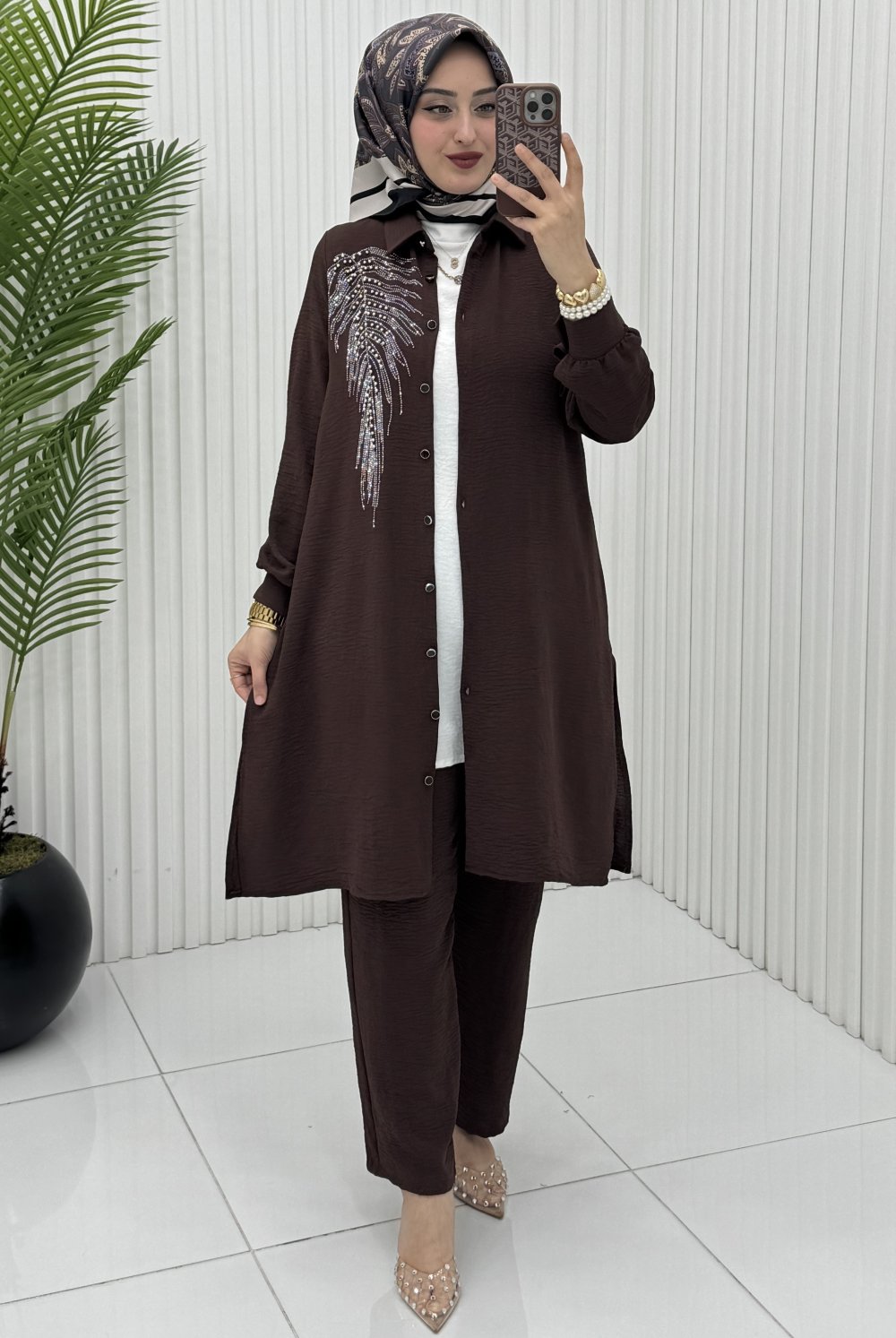 Güliz 3lü Takım  , hem iş hem de günlük hayatınızda rahatlıkla tercih edebileceğiniz çok yönlü bir parçadır. Şıklığı konforla buluşturan bu tasarım, sezonun en gözde modellerinden biri olacak!