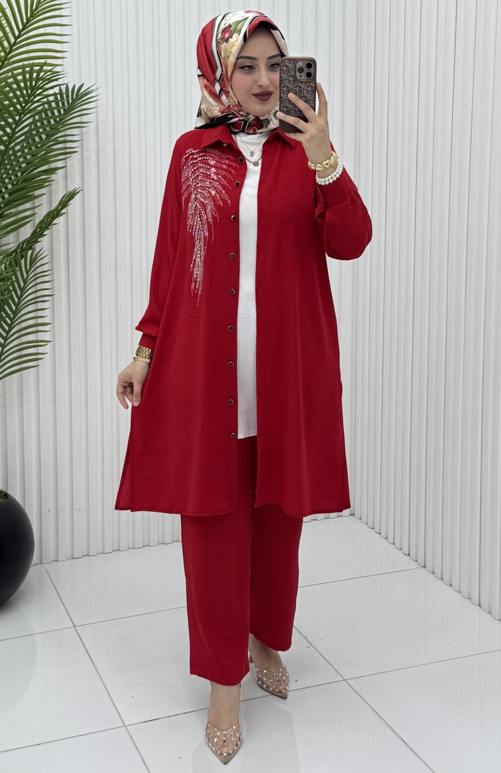 Güliz 3lü Takım  , hem iş hem de günlük hayatınızda rahatlıkla tercih edebileceğiniz çok yönlü bir parçadır. Şıklığı konforla buluşturan bu tasarım, sezonun en gözde modellerinden biri olacak!