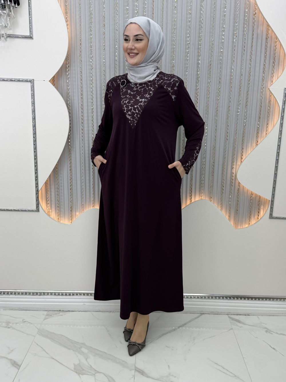 Halide Elbise Mor