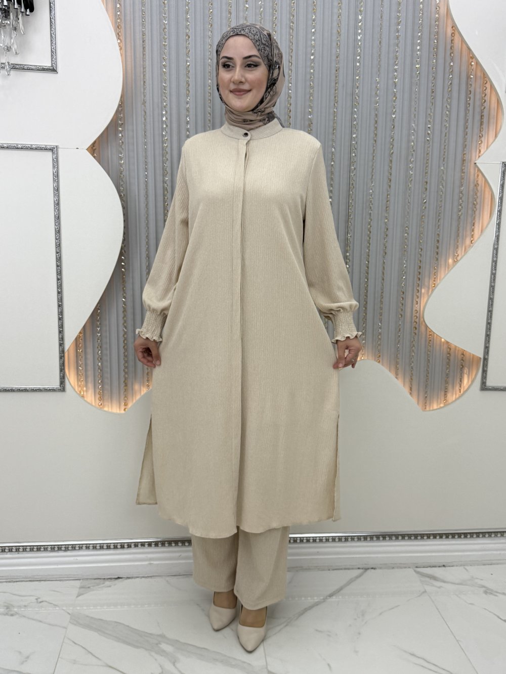 Havalı Pantolonlu Takım Krem
