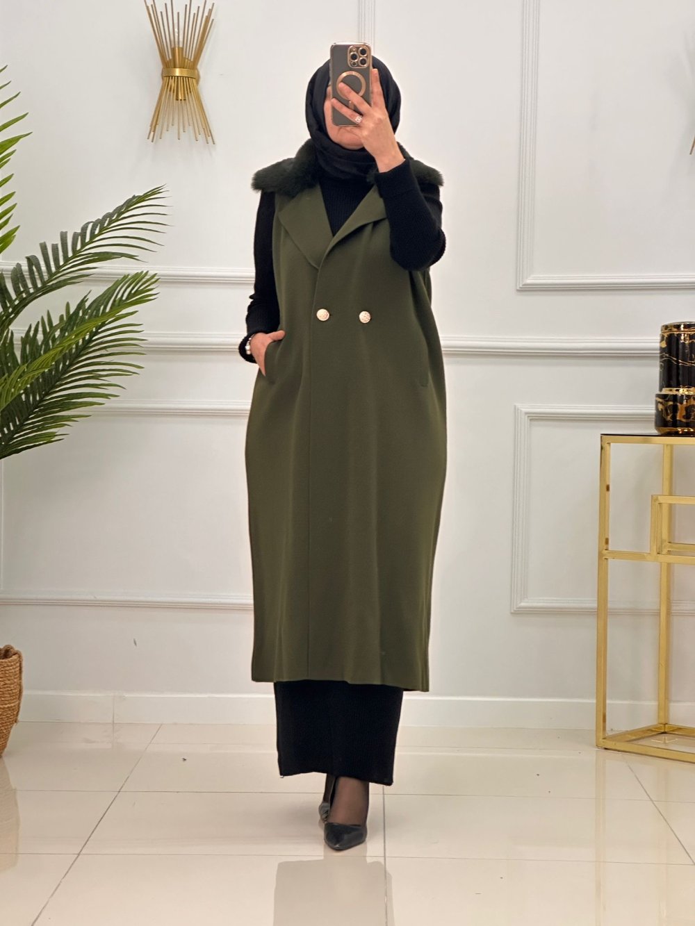 Ürün triko kumaştır yakasında takıp çıkarılabilen kürk vardır