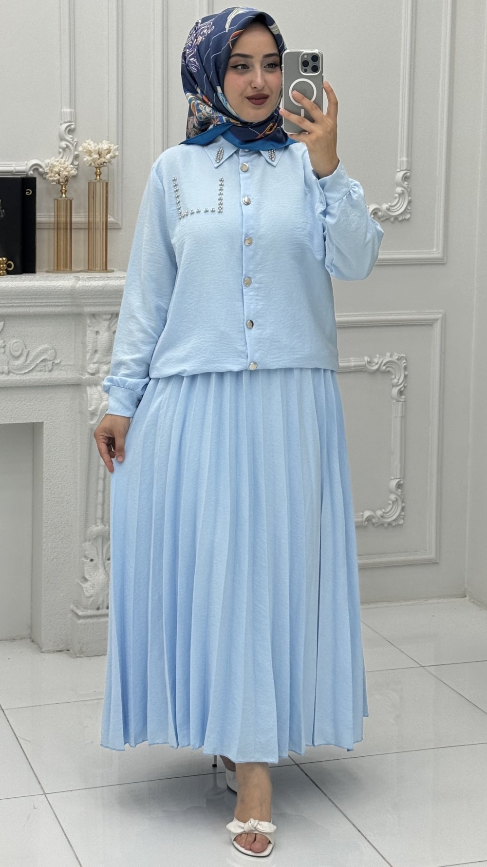 Rahatlık ve şıklığı bir araya getiren Hazal Etek Takım, sade ama zarif duruşuyla günlük kombinlerinizi güçlendiriyor. Yumuşak kumaşı ve esnek yapısı sayesinde gün boyu konfor sunarken, modern kesimiyle stil sahibi bir görünüm yaratır.