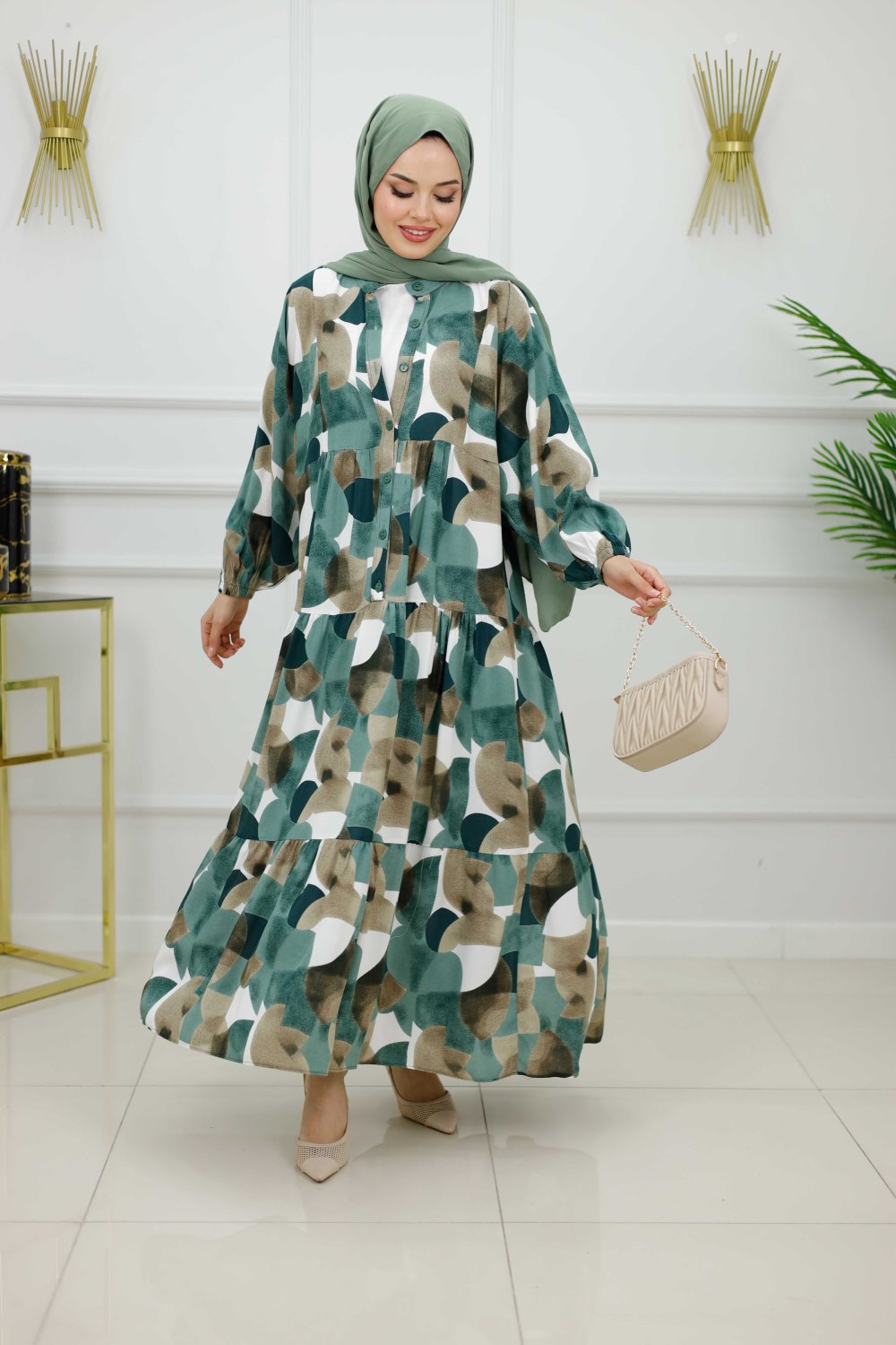 HAZAL VİSKON ELBİSE-YEŞİL