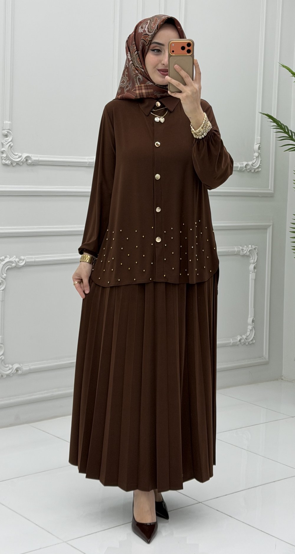 Hesna Etek Takım,hem iş hem de günlük hayatınızda rahatlıkla tercih edebileceğiniz çok yönlü bir parçadır. Şıklığı konforla buluşturan bu tasarım, sezonun en gözde modellerinden biri olacak